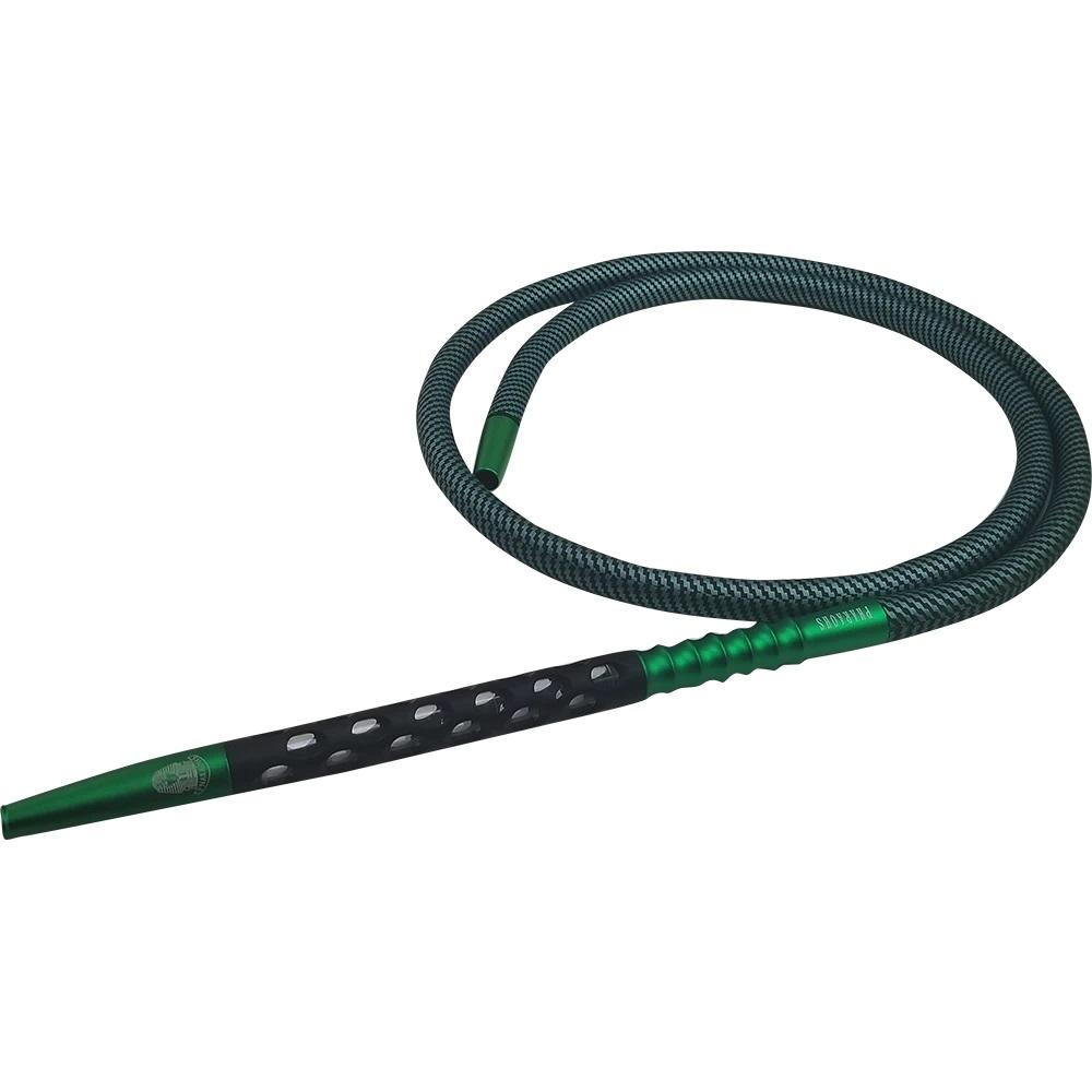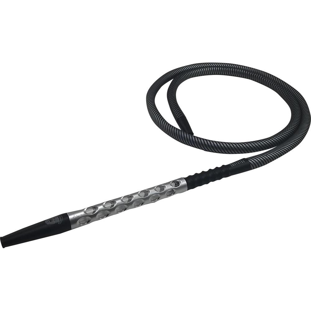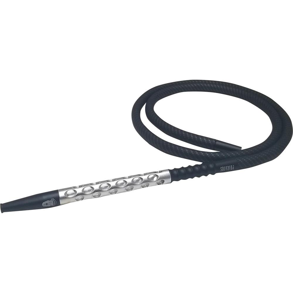The Pharaohs Saber Carbon Hose measures at a total 74.5" in length including a 12.5" handle. It is made of anodized aluminum and soft touch silicone which are both fully washable and it can be easily disassembled for deep cleaning.