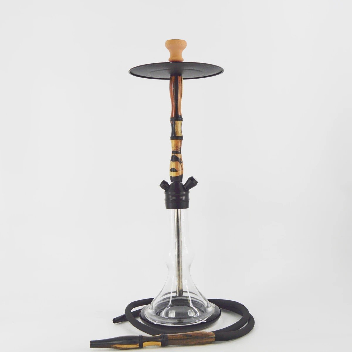 The DHO6 Resin Woodstock Hookah is a little piece of nature in all its glory incorporated into a hookah. The stem has a nice clean resin wood finish that looks natural and sleek and it also complimented with a matching hose handle. This hookah stands at roughly 26" from base to top of the bowl and include everything pictured as well as rubber fitting, tongs and mouthpiece.